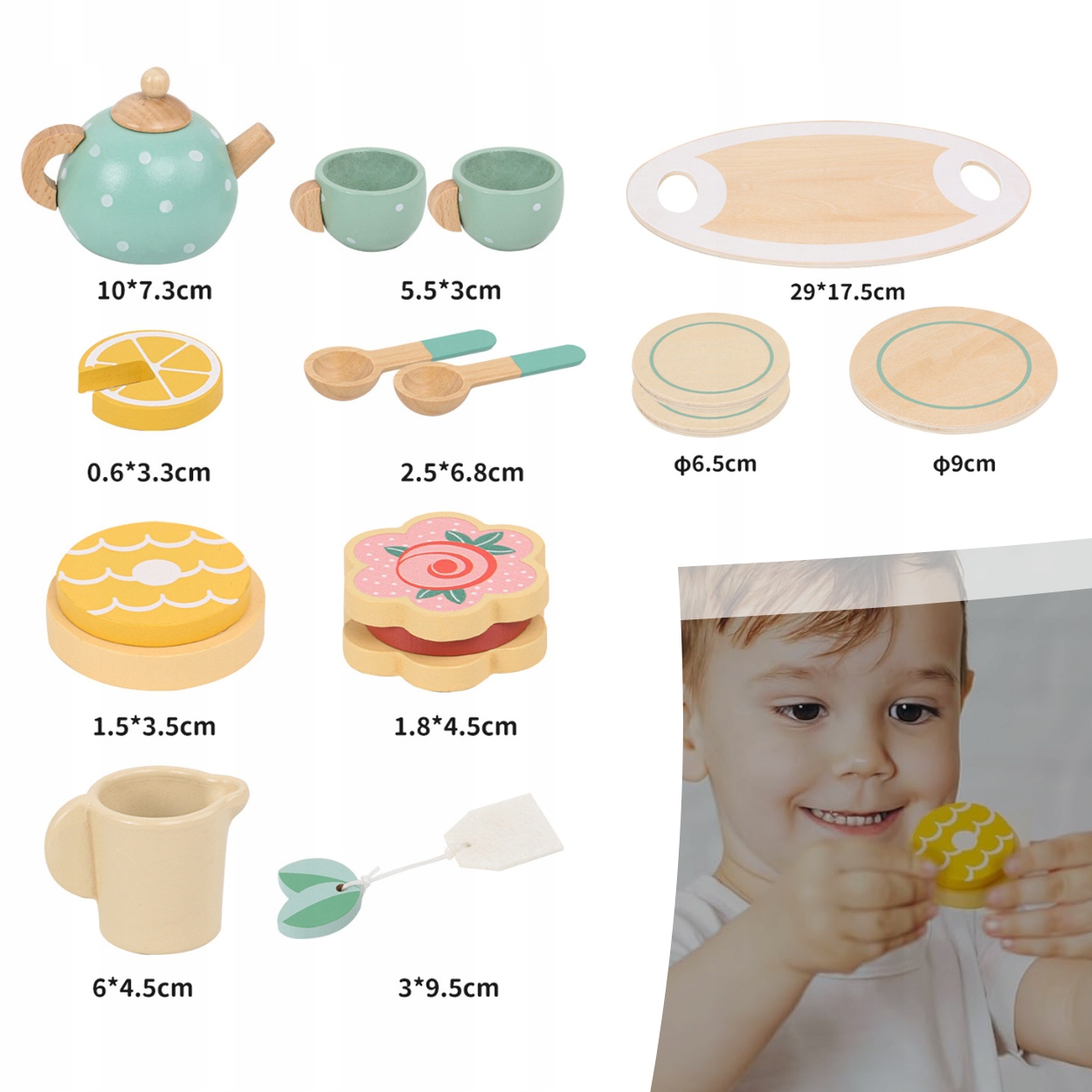 ✔️Высококачественное дерево✔️Чайный сервиз изготовлен из прочного дерева, что обеспечивает долгий срок службы игрушки и дает гарантию на ее устойчивость к повреждениям.