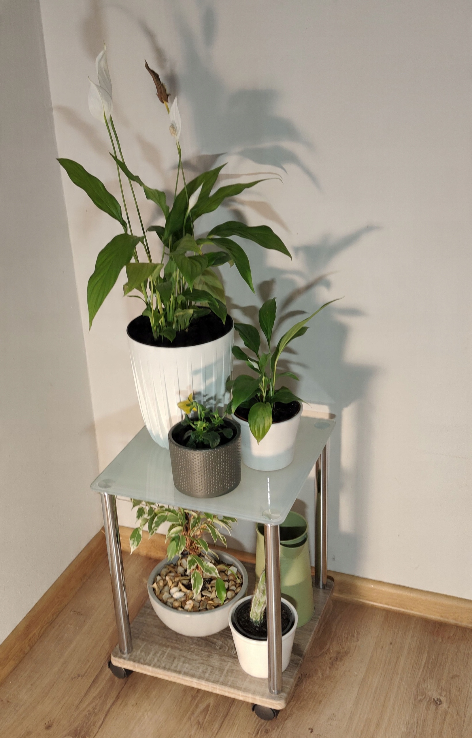 Журнальный столик, который также можно использовать как подставку для цветов, мобильный столик для ноутбука или прикроватную тумбочку.