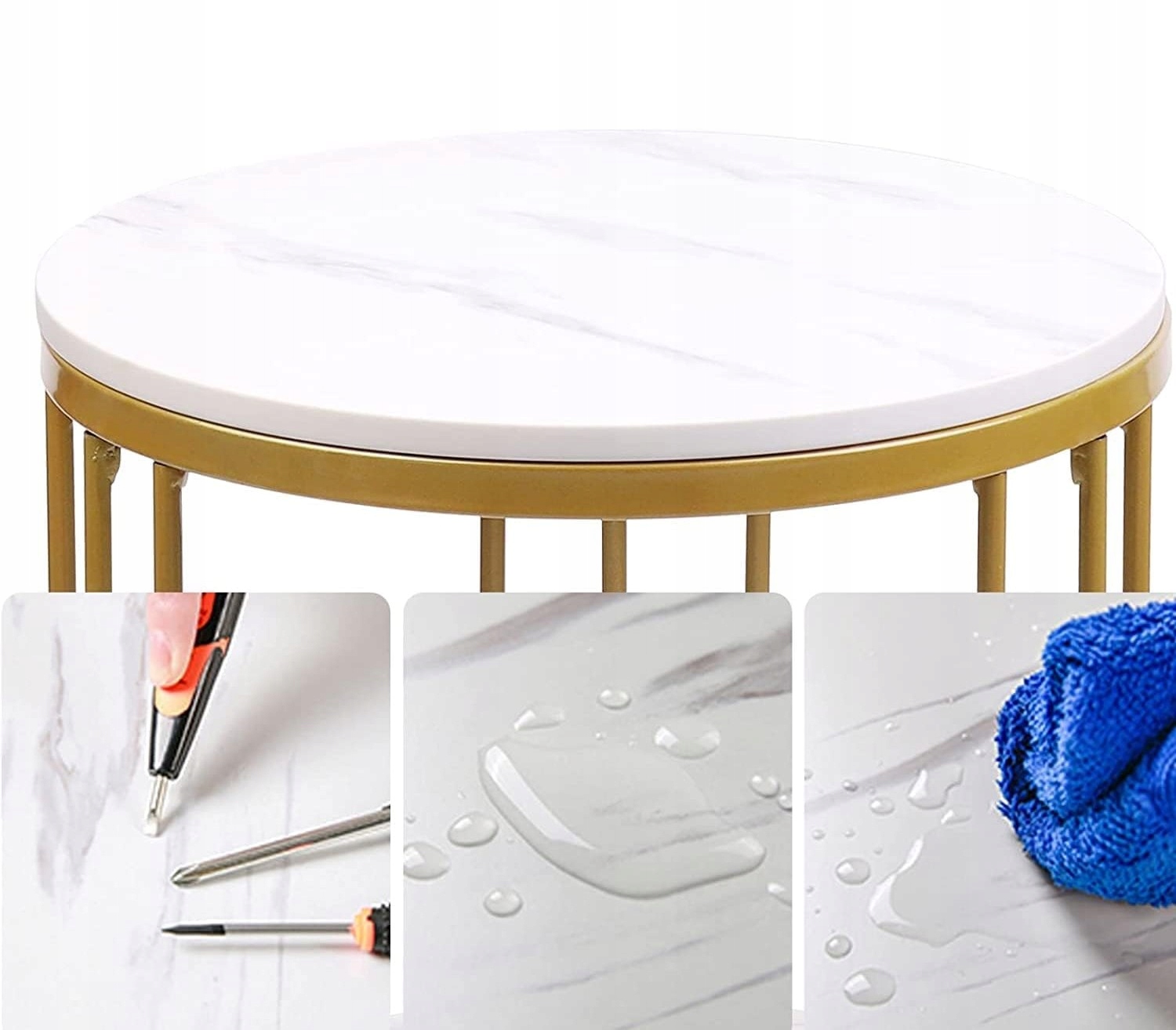 КАВОВИЙ СТОЛІК GLAMOUR WHITE MARMURE ДЛЯ ВІТАЛЬНІ GOLD ROUND GLAMOUR LOFT