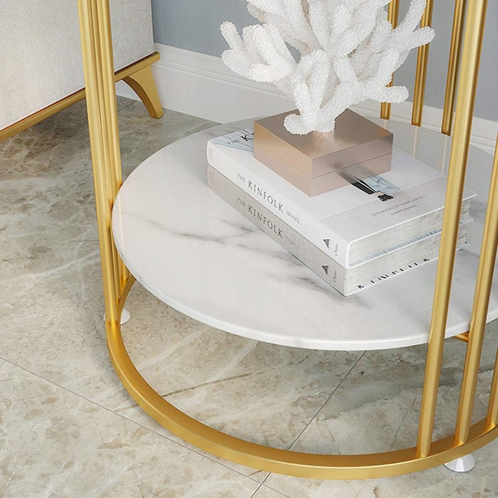 ЭЛЕГАНТНЫЙ БЕЛО-ЗОЛОТОЙ ЖУРНАЛЬНЫЙ СТОЛИК С ДВУМЯ ПОЛКАМИ