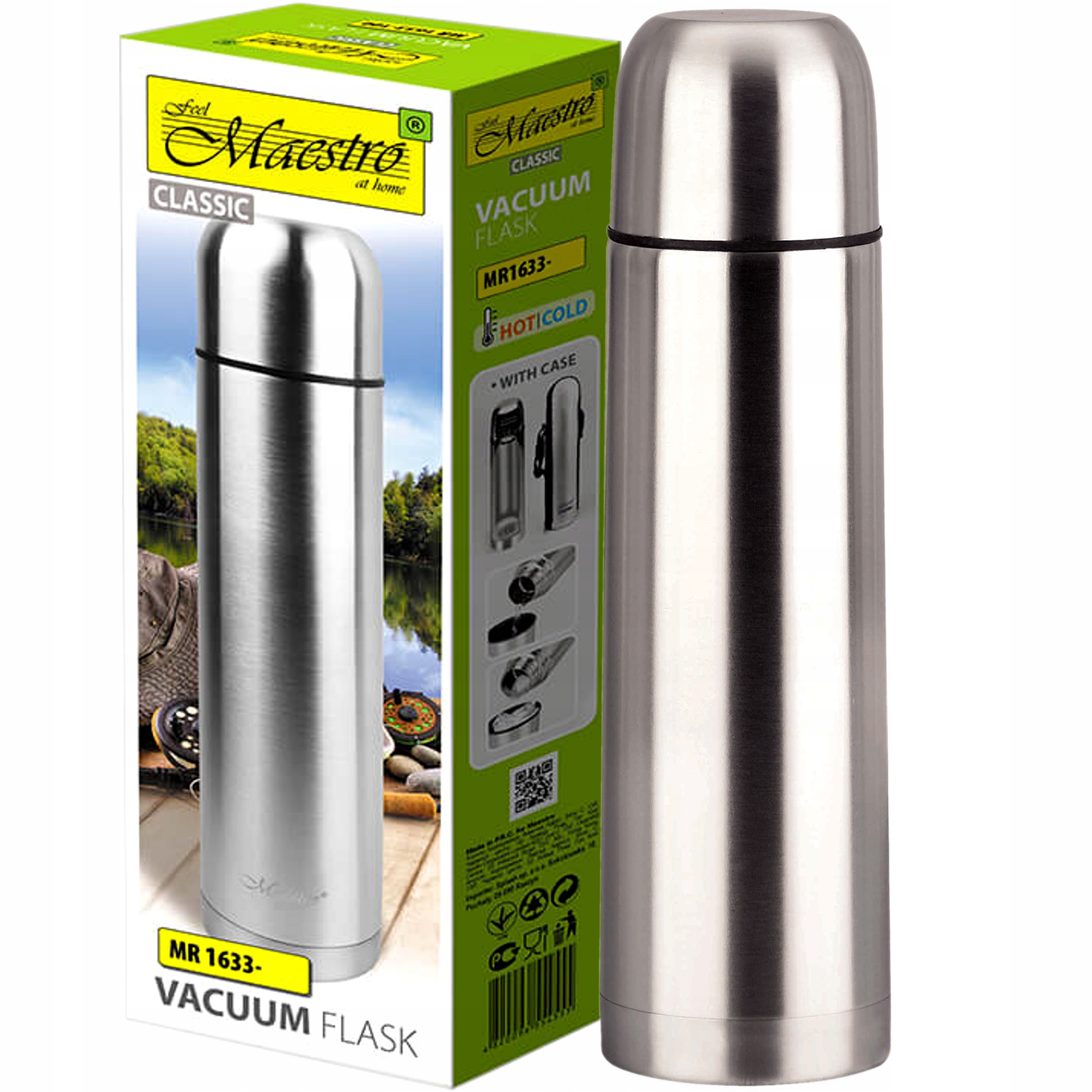 ⭕ Maestro MR-1633-100 -очень практичный термос , предназначенный для переноски как горячих, так и холодных напитков. Стены из высококачественной стали, , которые изолированные вакуум. позволяет отличное отделение от внешней температуры. благодаря этому кофе или чаю внутри термоса остается согреть много, много часов!