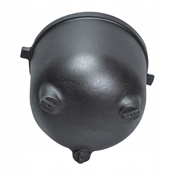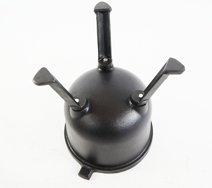 Устойчив к высоким температурам. Он оснащен прочной крышкой с отверстием, ручкой и тремя устойчивыми ножками. На чашу казана надевается крышка.