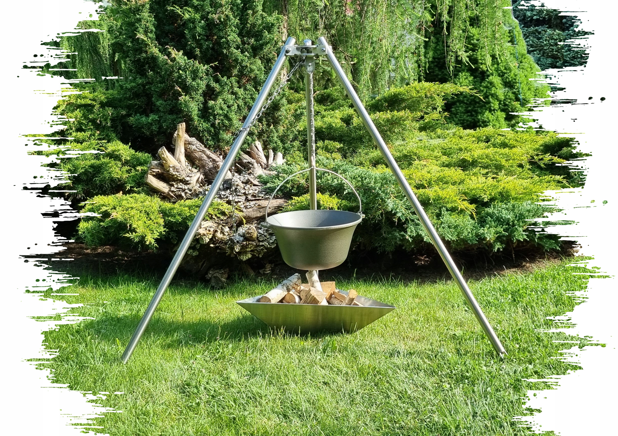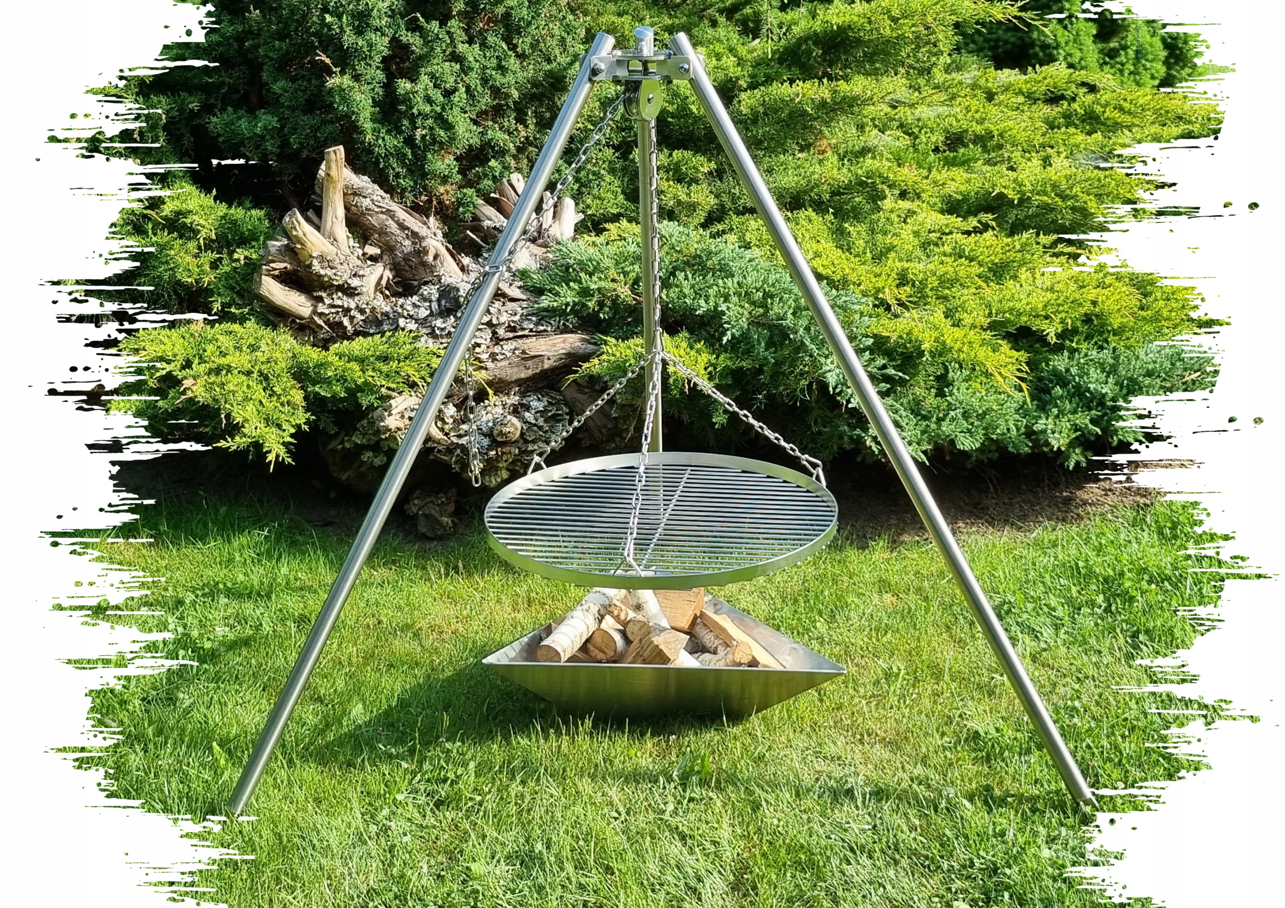 Чтобы повесить казан над камином, мы рекомендуем качественный штатив из нержавеющей стали высотой 115 см, нержавеющую цепь и красивый треугольный камин из листового металла толщиной 3 мм с размерами сторон Размером 50х50х50 см и высотой примерно 15 см. Все есть в наличии на других наших аукционах.
