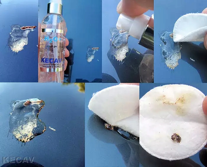 Основная, но не единственная цель создания геля – помочь удалить "птичьи дары", появляющиеся на наших идеально изнеженных кузовах автомобилей. Известно, что попадание птичьего помета на краску часто приводит к необратимым повреждениям в виде ямок, пятен и т.п. Стирка этих «подарков» водой или другими жидкими средствами обычно предполагает разливание средства на большую часть поверхности, даже хотя нам нужно замочить и очистить лишь небольшую, грязную его часть. И тут на помощь приходит H2O+ — его можно наносить точечно, только на загрязненный участок.