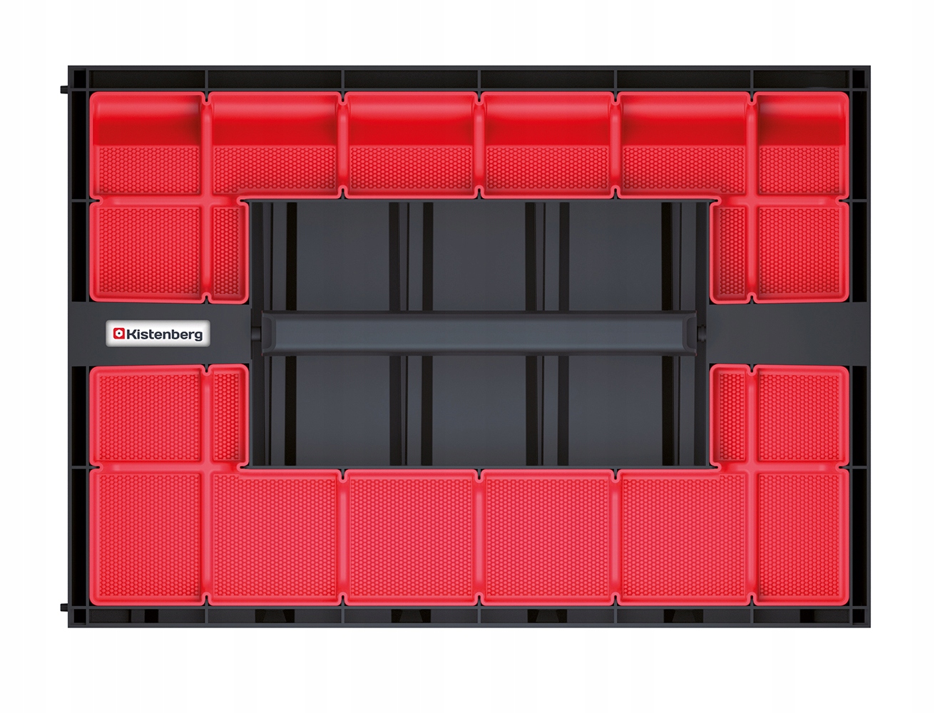 - Две резиновые вставки – Верхняя часть Часть коробки оснащена двумя съемными резиновыми органайзерами для инструментов, шурупов и т. д.