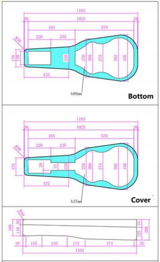 Модель Классического футляра для гитары подходит для классических гитар размером 4/4. Чтобы быть уверенным, тщательно измерьте свой инструмент и сравните его с размерами, указанными на рисунке ниже.