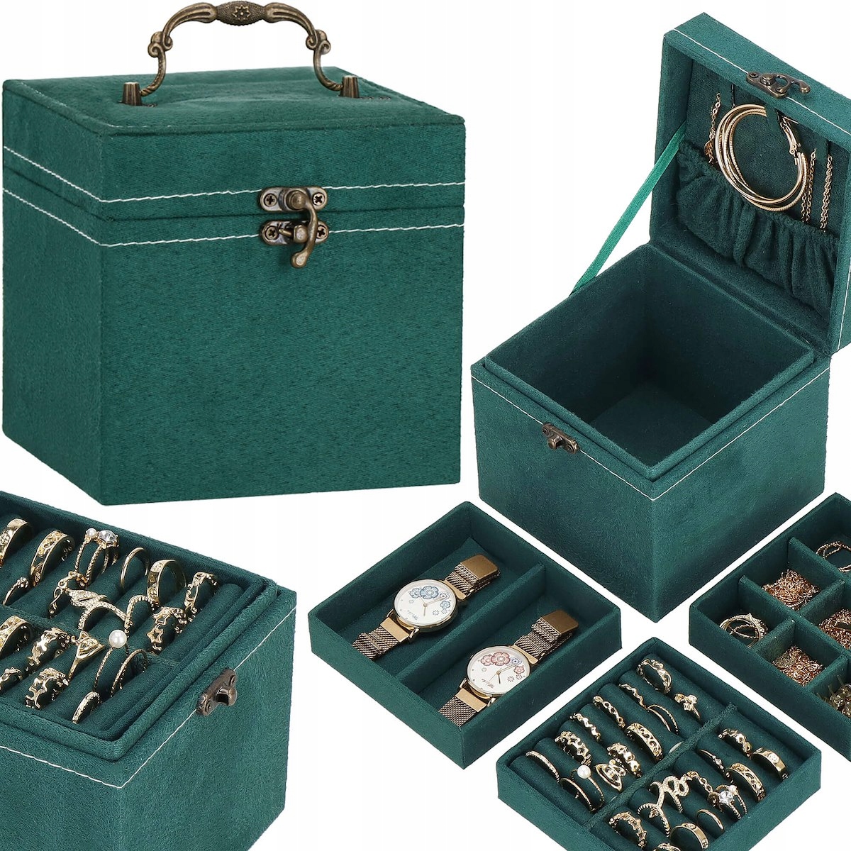 Элегантная шкатулка для драгоценностей изготовлена с большим вниманием к деталям и тщательностью. Дополнительную эстетическую ценность добавляют стильная застежка и ручка для переноски в стиле ретро, которые идеально сочетаются с бархатной обивкой и благородными цветами.