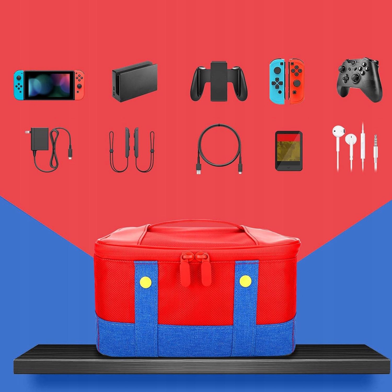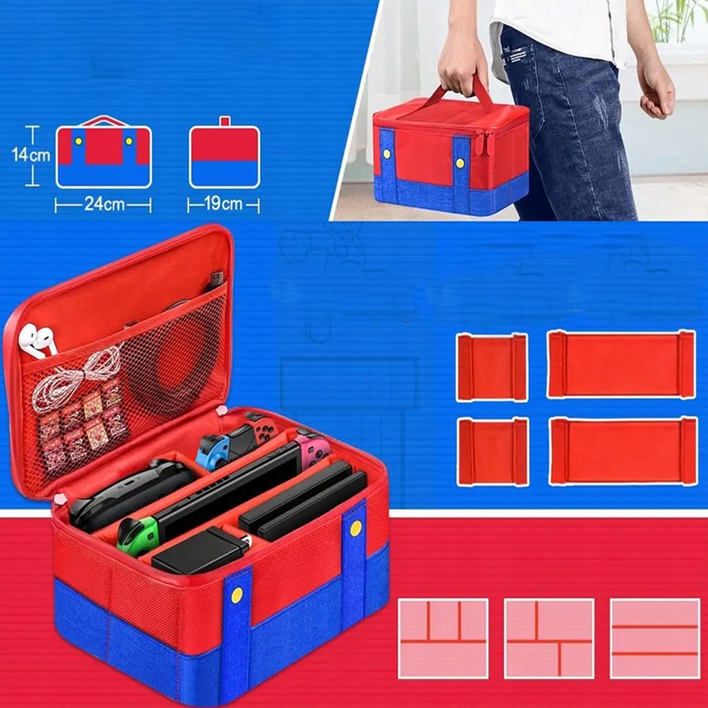 - 🎁plised для многих отсеков, в том числе 4 съемных раздела, идеально подходит для хранения всей системы коммутаторов, таких как Joy-Con, провинции, док-станция переключателей, питание сети и другие аксессуары.