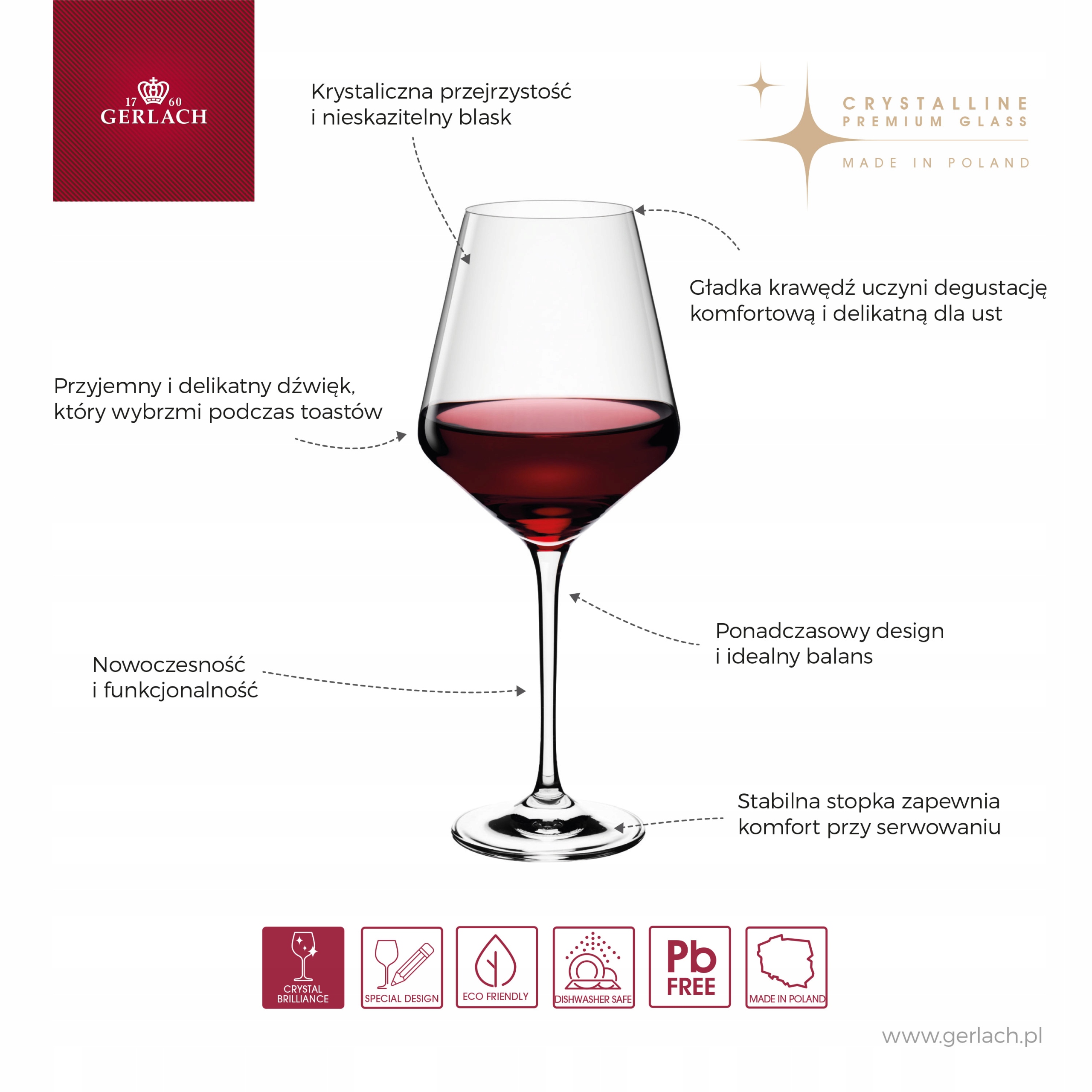 Коллекция стекла Gerlach – это мир, где элегантность и изысканность переплетаются с прочностью и функциональностью. Бокалы Gerlach изготовлены из кристаллического стекла премиум-класса, то есть бессвинцового хрустального стекла высочайшего качества, отличающегося необычайной прозрачностью, деликатностью и в то же время повышенной стойкостью. Благодаря этому вы сможете наслаждаться ими долгое время, не беспокоясь о потере блеска или царапинах.