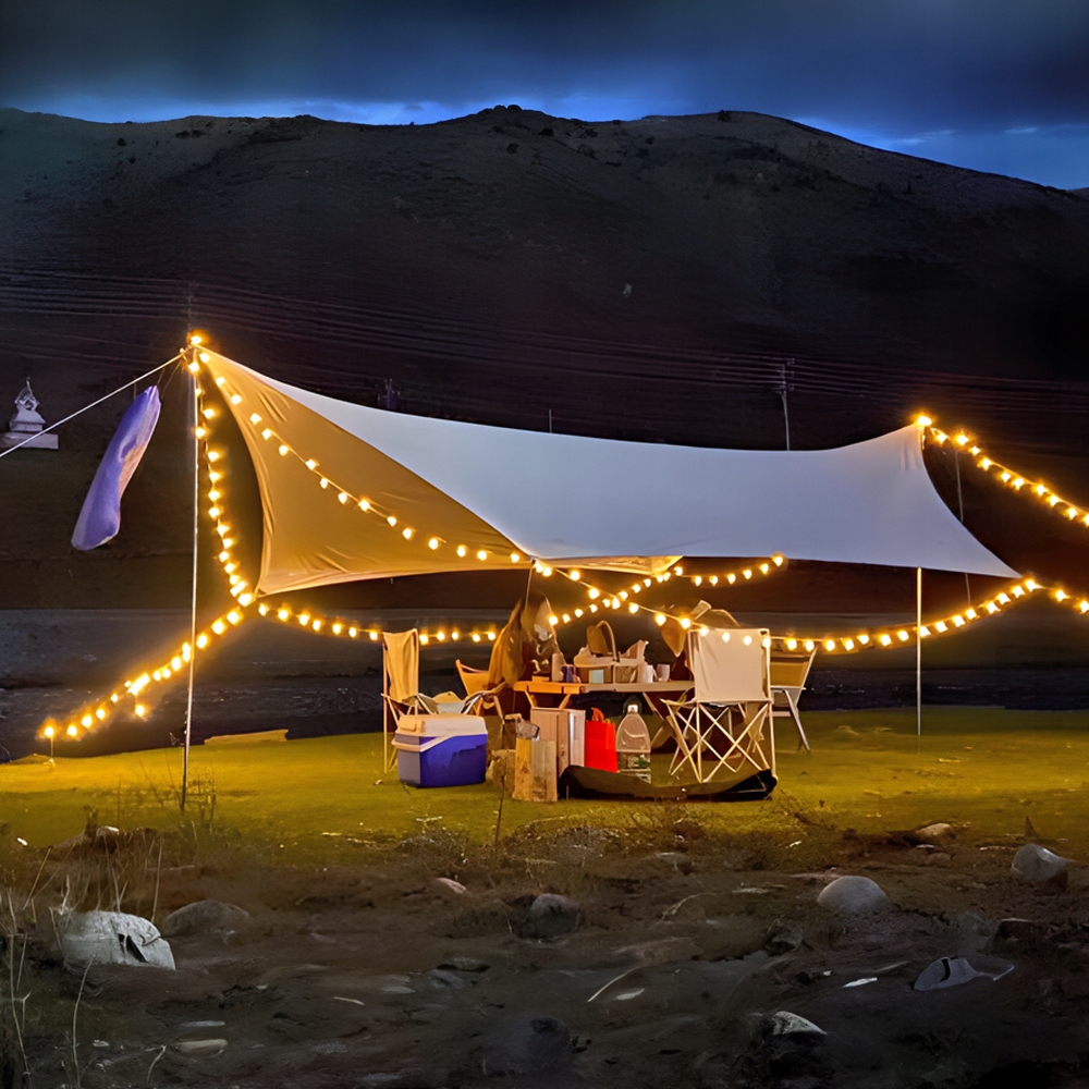 произведен из приятной и водонепроницаемой ткани, металлический крепеж для натулки и тщательно отреченных краев, благодаря которой наша палатка является чрезвычайно долговечной, долговечностью и устойчивой к разрыву и не сломается.