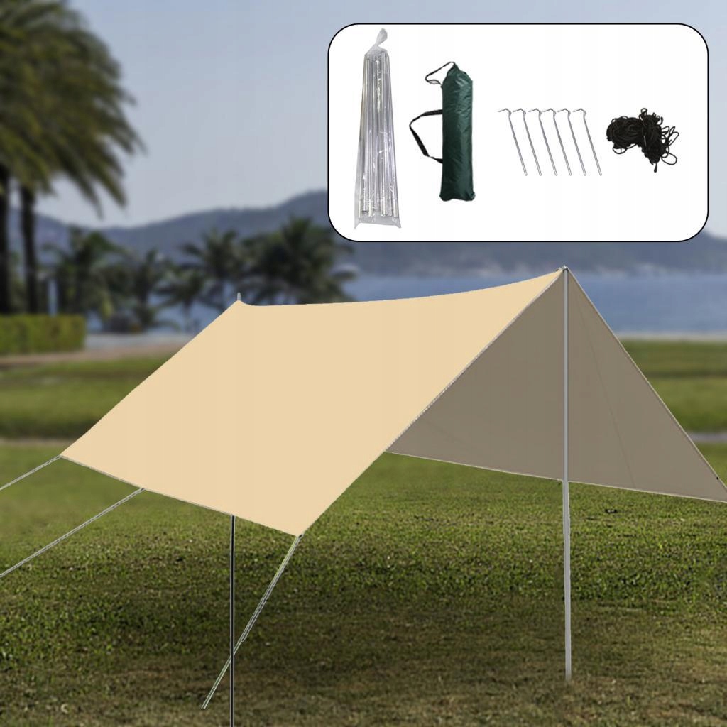 [просторная тень]: после развертывания палатка для кемпинга обеспечивает большую, тенистую поверхность, защищая пользователей от прямых солнечных лучей. Применение]: Его можно использовать не только в качестве зонтика для кемперов, но и в качестве солнцезащитного крема для пляжа или пикника в парке.