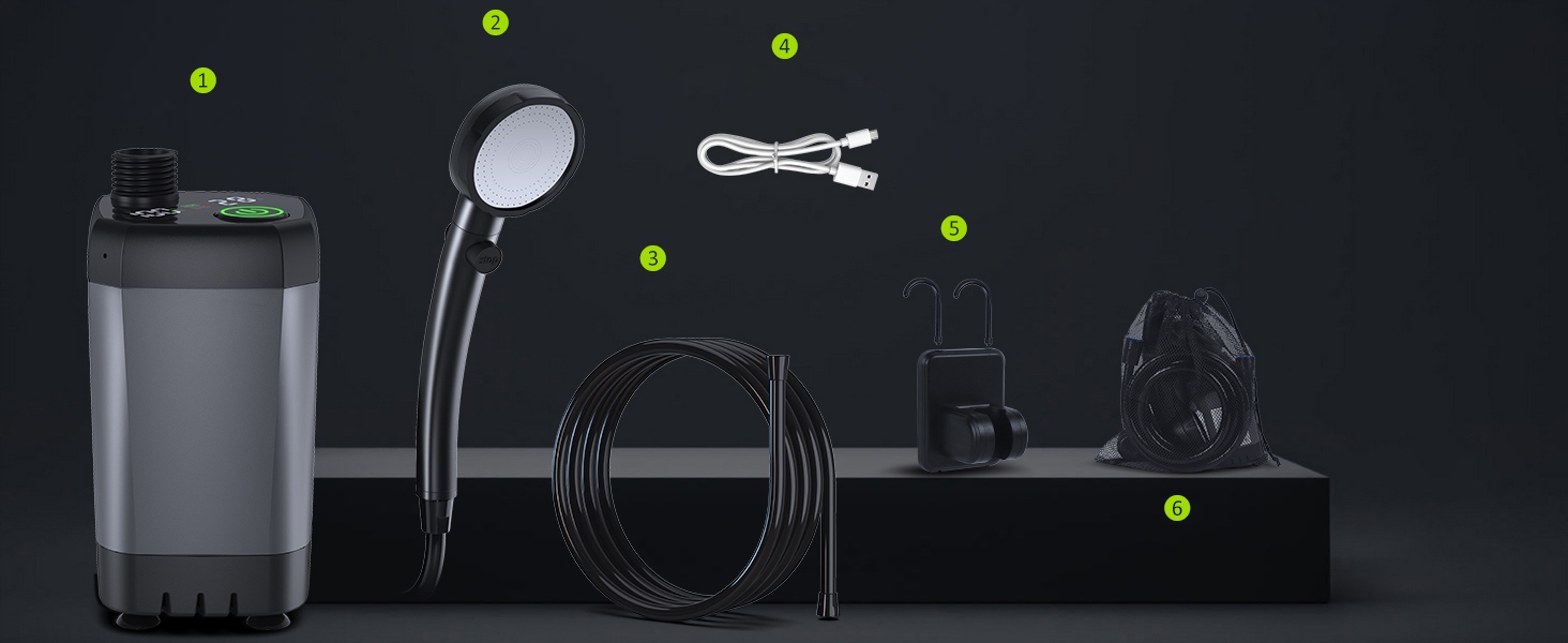 - Оснащен прочным двигателем, который работает тихо, наш портативный душ позволяет вам спокойно использовать душ в открытом воздухе.