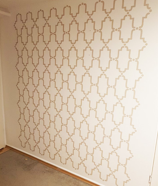 - Дизайн трафарета подготовлен таким образом, чтобы рисунок мог повторяться на всей поверхности стены.