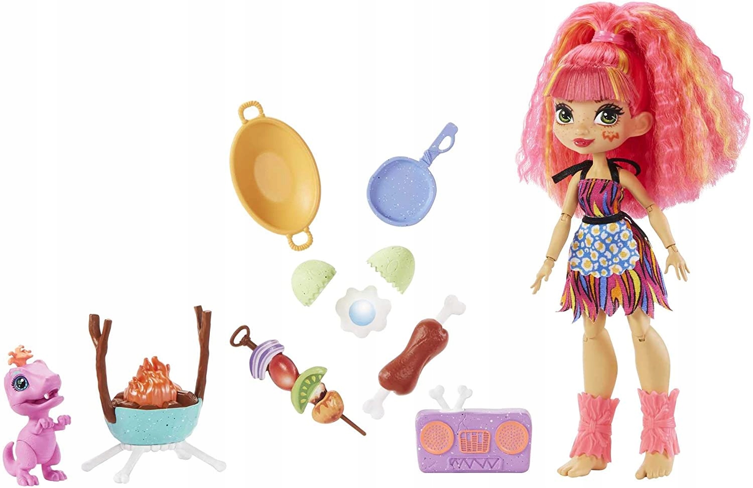 Вот Cave Club ™ - группа неуправляемых молодых пещерных людей, которые опережают свою эпоху! Roaralai ™. Вместе с Roaralai ™ вы можете побаловать ее тигр и подготовить первый гриль с Emberly ™. Идеальный подарок для детей с 4 года. Выберите свою любимую куклу или соберите их все, потому что группа счастливее! Продается отдельно в зависимости от доступности. Декоративные цвета и элементы могут отличаться