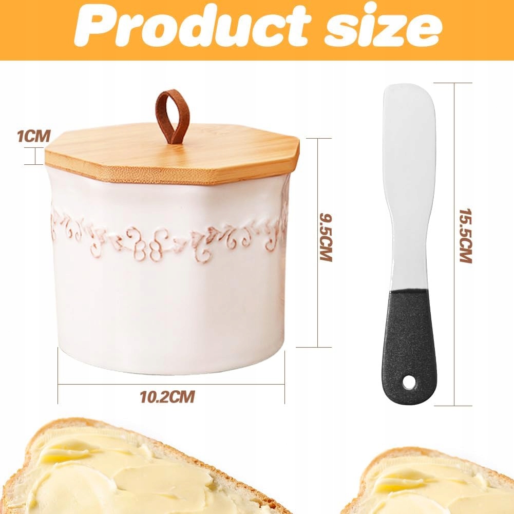 КЕРАМИЧЕСКАЯ ФРАНЦУЗСКАЯ МАСЛЕНКА, БЕЛАЯ, С КРЫШКОЙ И ЛОПАТКОЙ