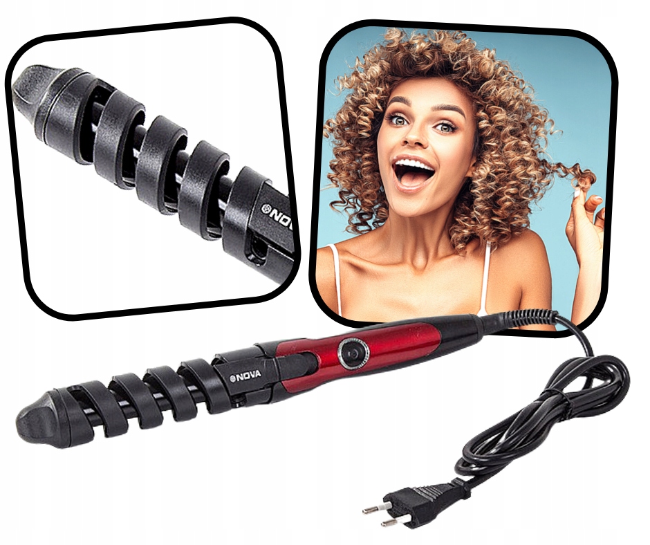 Спиральная плойка Nova — устройство, оснащенное современной системой зажима волос, обеспечивающей одновременный доступ к трем источникам тепла и завивку в трех измерениях.