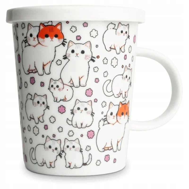 кружка с мотивом кошек. С комфортным ухом, отлично подходит для поклонников лиственного чая и травяных инфузий. Керамический пивовар гигиеничен и прост в использовании. Крышка облегчит пивоварение ароматического напитка.