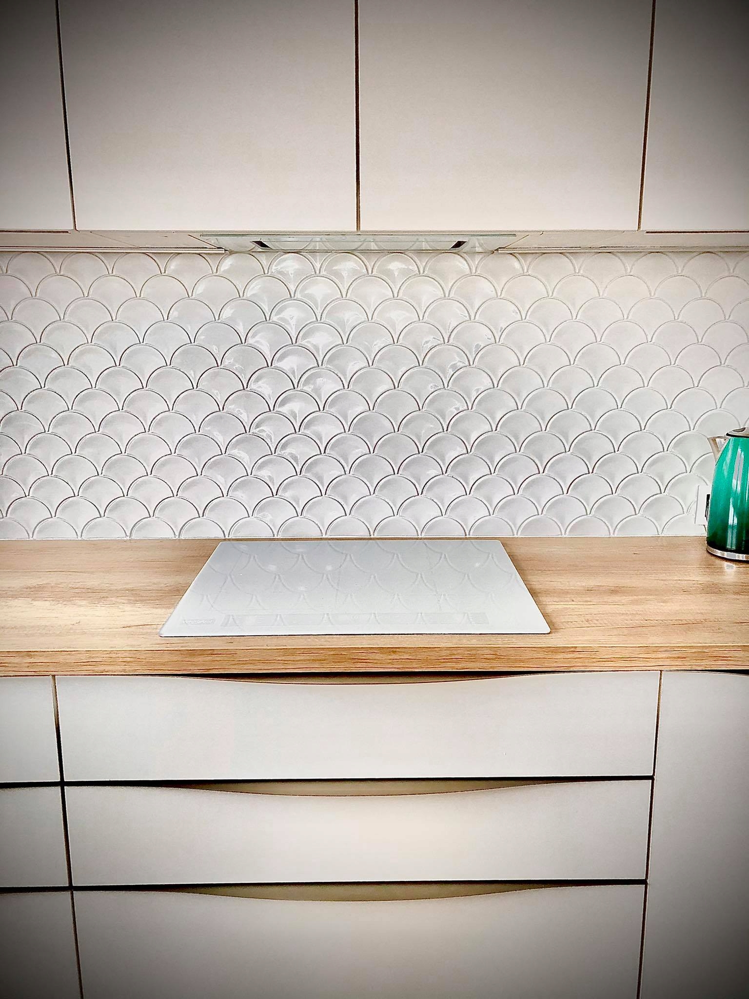 Плитка в основном используется на кухнях и в ванных комнатах. Рыбья чешуя незаменима в амбициозных проектах, благодаря ей можно привнести в интерьер немного утонченности.