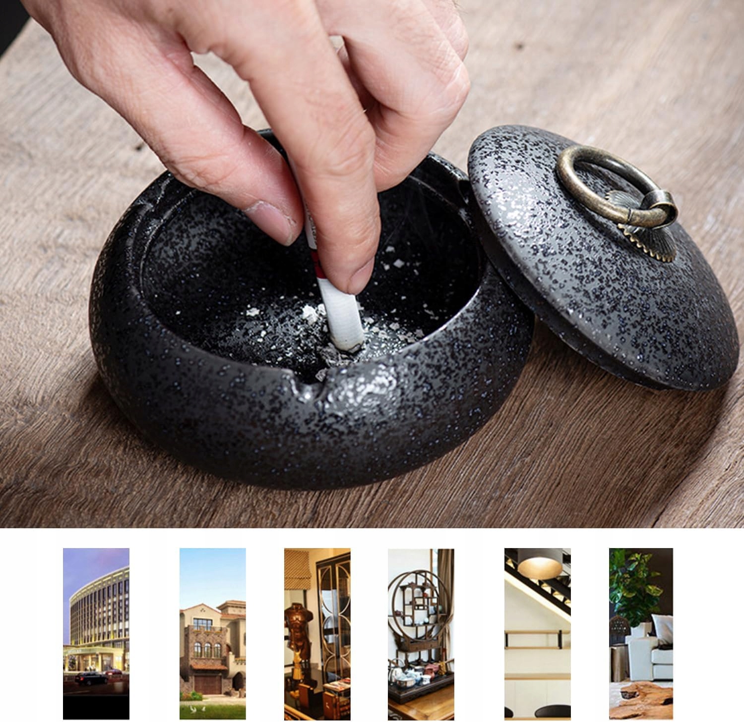 Эта керамическая пепельница с крышкой идеально подходит для использования на открытом воздухе, защищая пепел от ветра и сохраняя чистоту вокруг ️. Идеально подходит для сада, балкона, террасы или перед входом в помещение, обеспечивает комфортное место для курящих гостей.