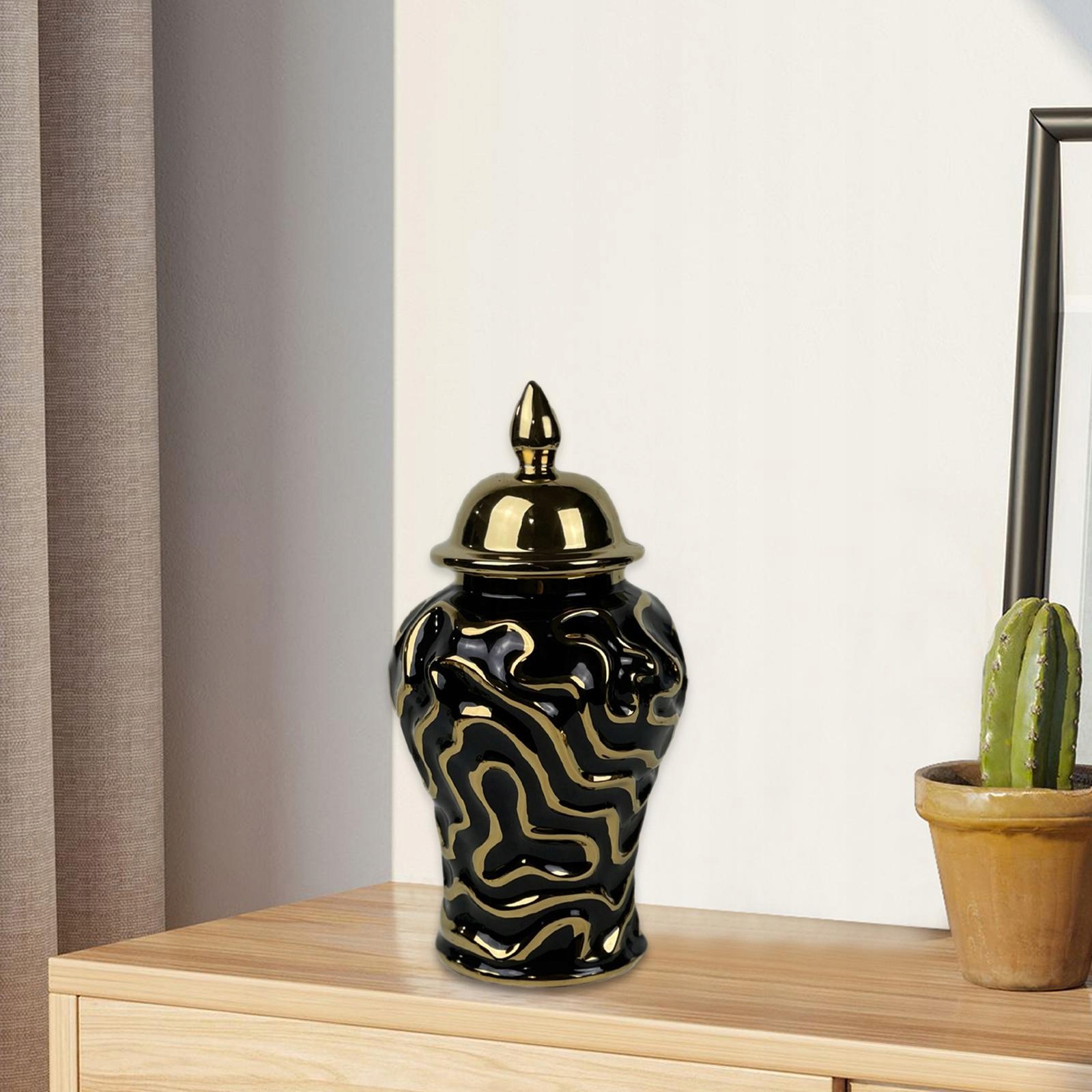 Фарфоровая банка для имбиря с крышкой Традиционная керамическая банка Ваза для цветов Черная 15х15х29см