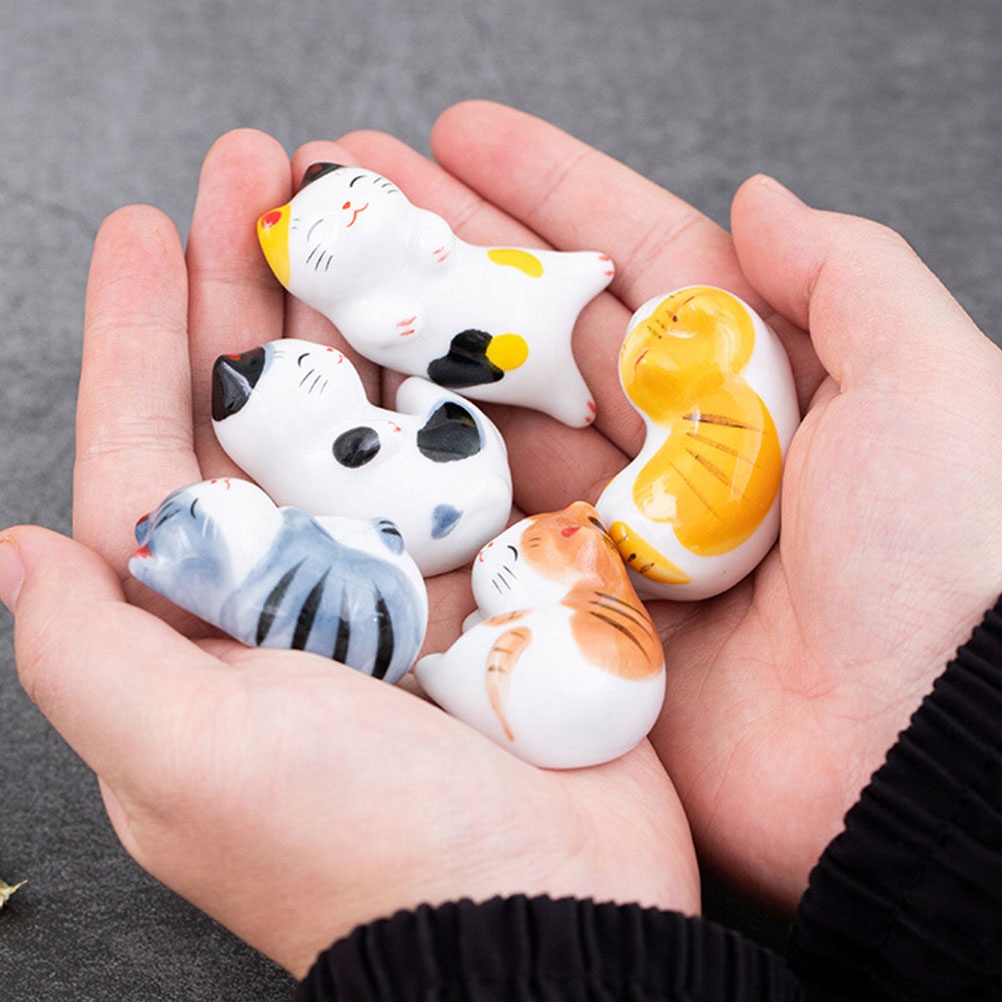 КЕРАМИЧЕСКИЕ ПОДСТАВКИ ДЛЯ ЛОЖЕК В ФОРМЕ КОШКИ 5 ШТ. ДЛЯ УКРАШЕНИЯ СТОЛА