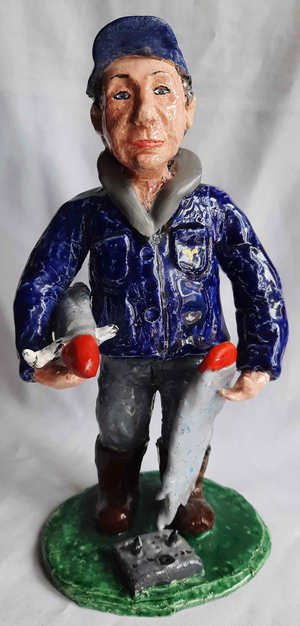 Керамическая скульптура с подписью рыбака