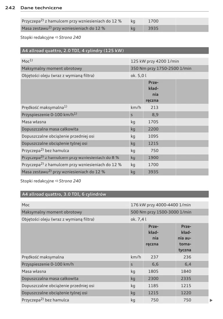 Руководство для владельца Audi содержит все версии оборудования и полезную информацию о том, как эффективно и безопасно использовать автомобиль, например. - индикаторы, контрольные лампы, открытие и закрытие - освещение и обзорность, сиденья, отсеки для хранения вещей, отопление, вентиляция, кондиционирование - вождение, советы по эксплуатации, обслуживание автомобиля - уровни жидкостей, проверка и долив, аварийные операции, замена колес, предохранителей, замена лампочек - технические данные... и многое другое, дающее ощущение безопасности и комфорта путешественников. Польское законодательство обязывает продавца приложить к товару инструкцию по эксплуатации автомобиля на польском языке. Руководство пользователя автомобиля новое, на польском языке.