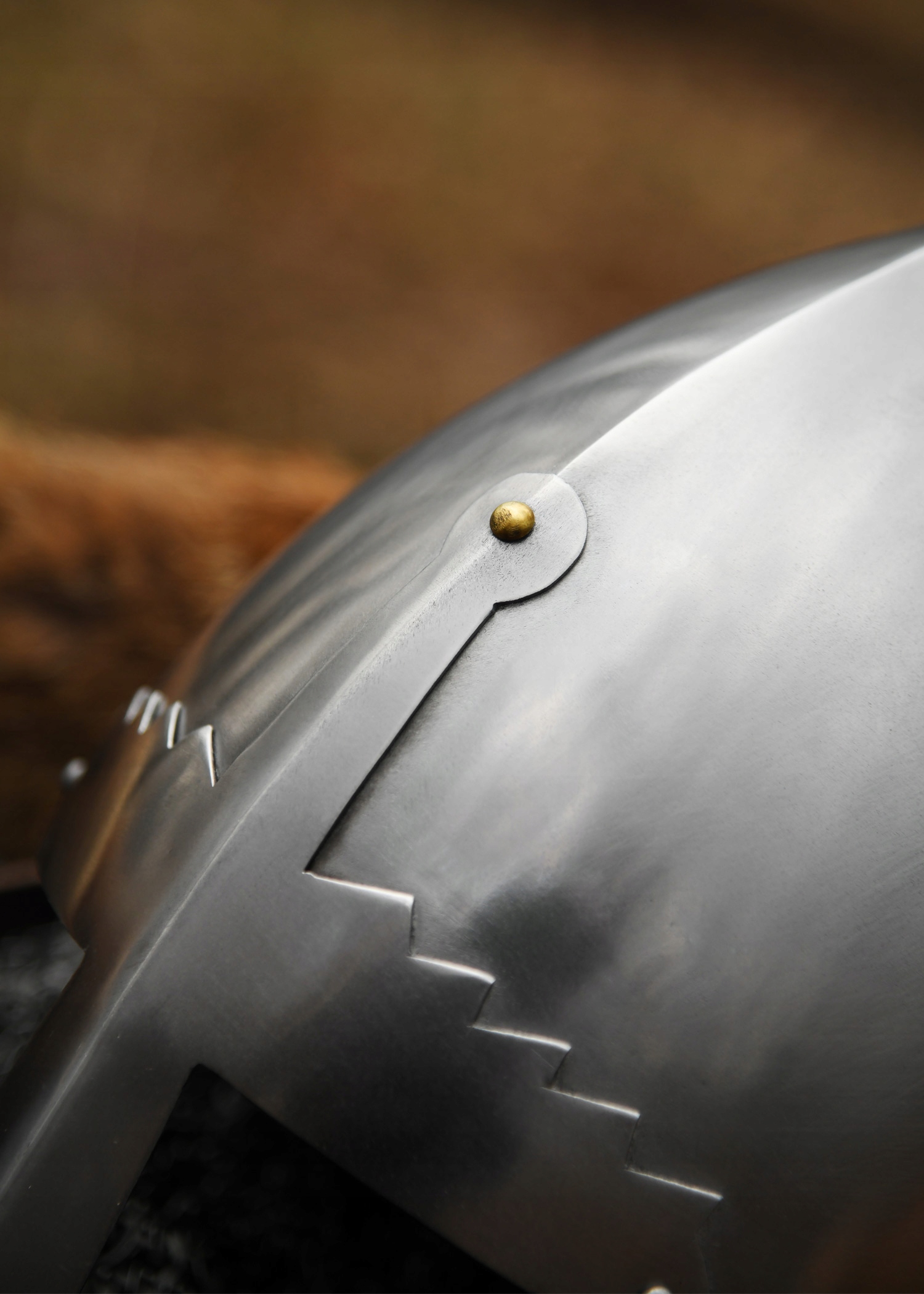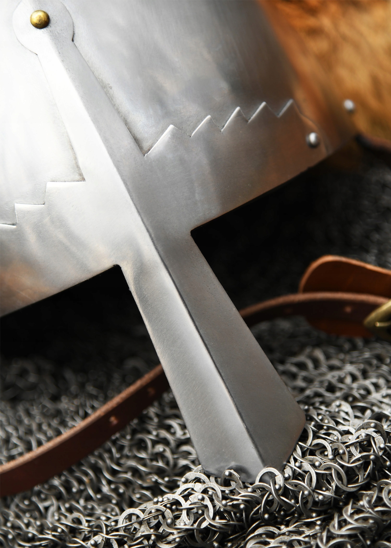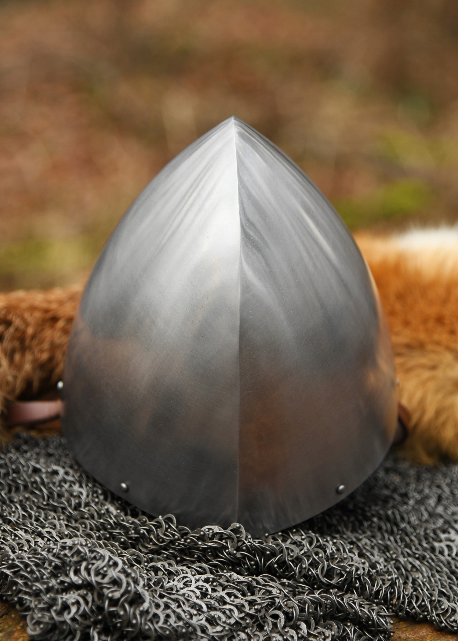 Реплика средневекового шлема 10 -го века, найденная в Праге и называемой шлемом Святого Венцлауса. Такие шлемы носили викинги, а также норманны и первые крестоносцы