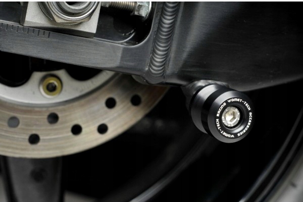 Защитные накладки маятника представляют собой опорные ролики увеличенного размера, которые ввинчиваются в заводские отверстия на заднем маятнике. Они защищают задний поворотный рычаг и позволяют быстро поднять мотоцикл на заднюю подножку. Благодаря нашим роликам во время падения сила удара передается на более сильные участки поворотного рычага.