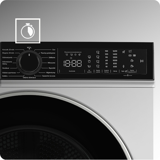 Прозрачный индикатор оставшегося времени сушки позволяет текущее отслеживание цикла и лучшее управление ежедневным графиком. Благодаря этому вы можете легко спланировать больше действий - не догадываясь и без спешки.