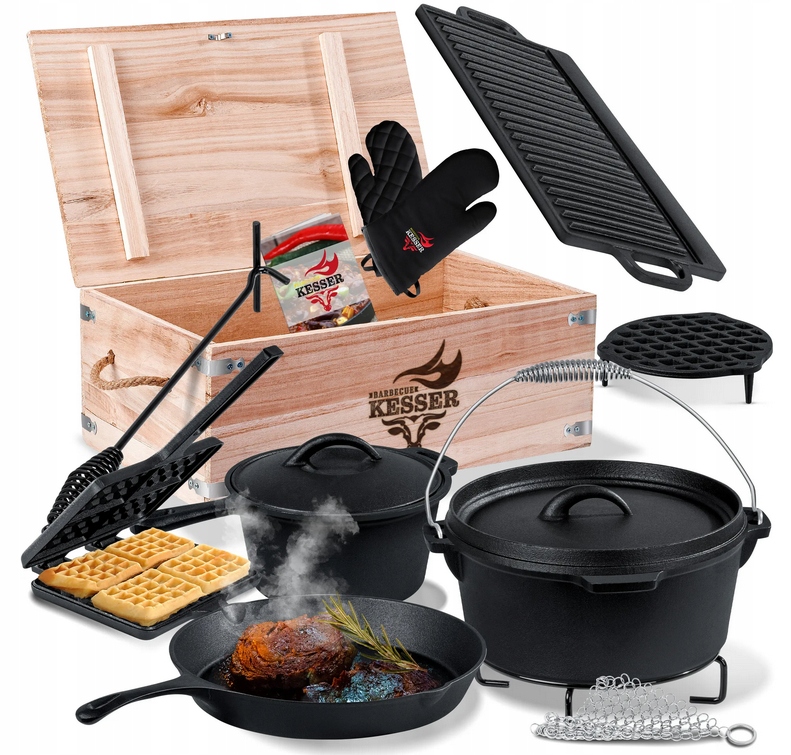 Откройте для себя силу приготовления пищи в свежем воздухе и дома с голландской печи Kesser®. Этот набор с деревянной коробкой - это все, что вам нужно, чтобы начать готовить, как профессионал. Идеально подходит для приготовления вкусных блюд на гриле, огня или на кухне!