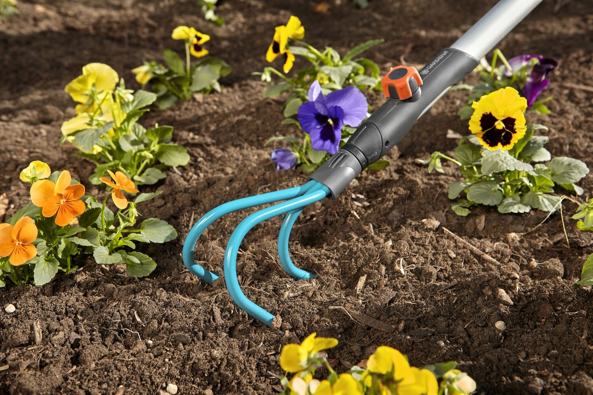 Когти Combisystem компании Gardena используются для аэрации и рыхления почвы, не повреждая при этом корневой ком растения. Это становится возможным благодаря трем прочным зубьям, оптимально приспособленным для этой цели, с рабочей шириной 9 см.