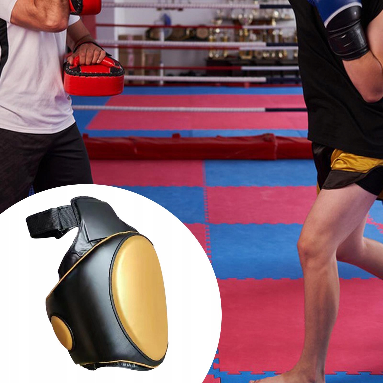 Универсальная защитная накладка на бедро для кикбоксинга для ударов по мишеням тхэквондо ММА, золото слева