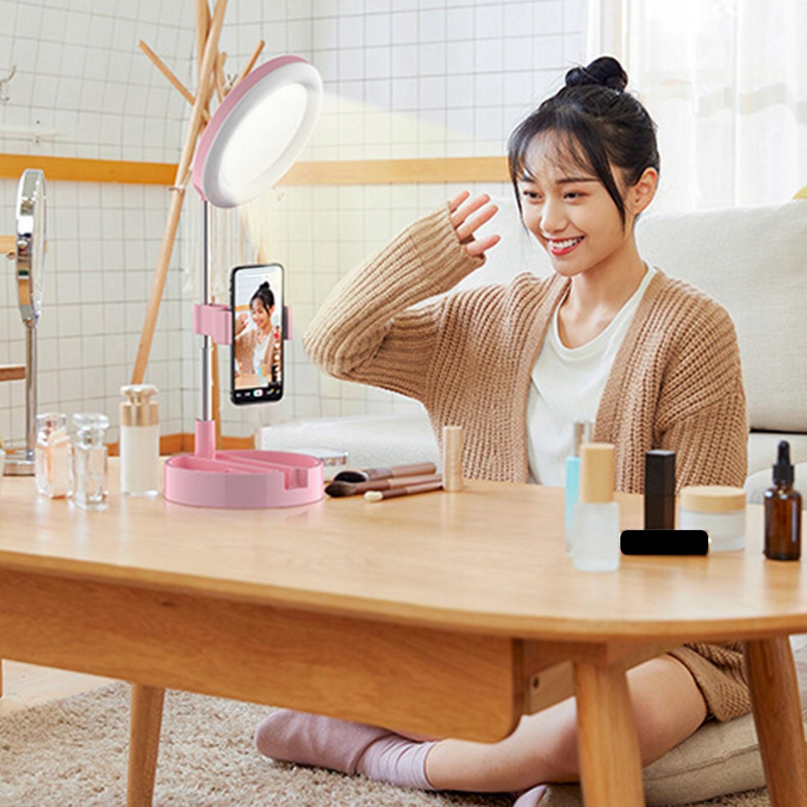 Кольцевой светильник для селфи с держателем для телефона для путешествий, селфи, чтения фотографий, розовый