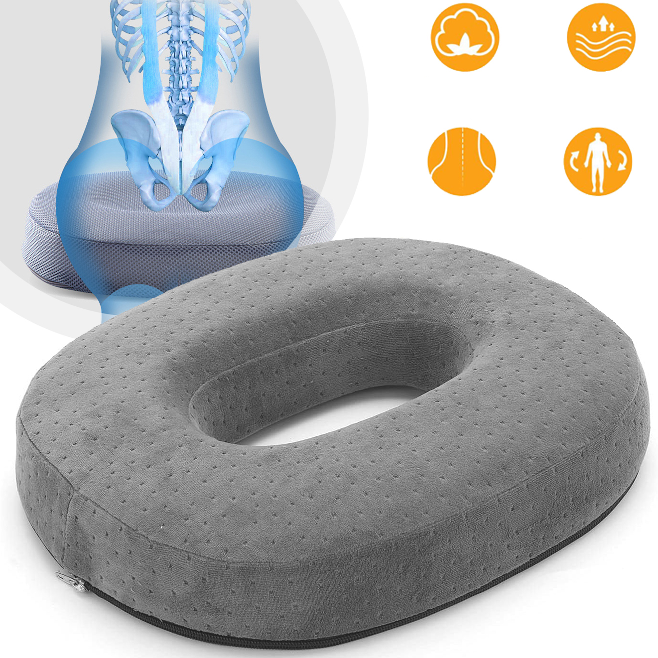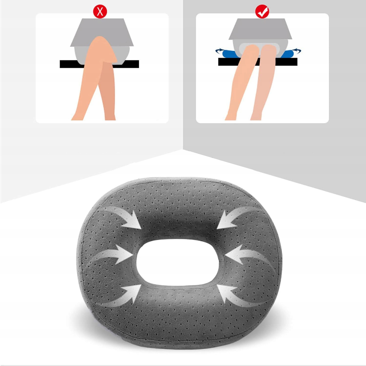 Подушка в форме пончика обеспечивает больший комфорт даже при длительном сидении и во время путешествий.