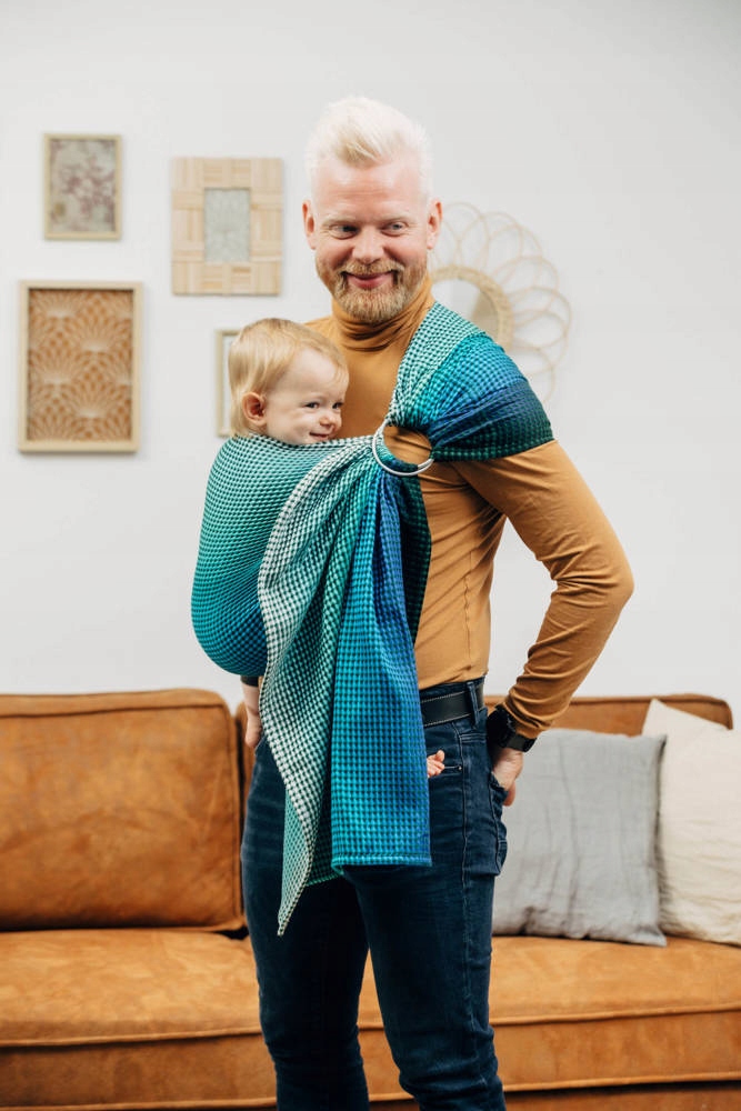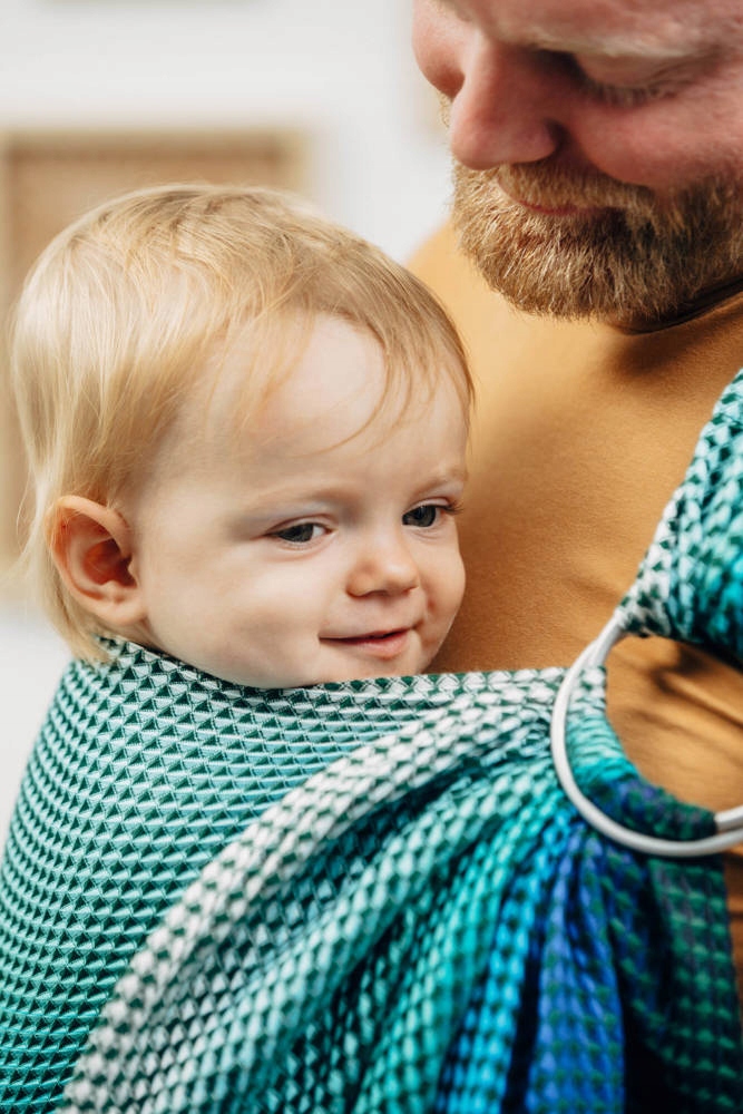 Слинги с кольцами чрезвычайно универсальны как для ребенка, так и для пользователя. При ношении слинга нет ограничений по возрасту и весу ребенка, поэтому начинать носить его можно практически с первого дня жизни малыша. Мы можем носить шарфы до тех пор, пока это удобно ребенку и родителю, который их носит. Стоит уделить внимание корректировке типа крепления и его положения по мере роста и развития ребенка.