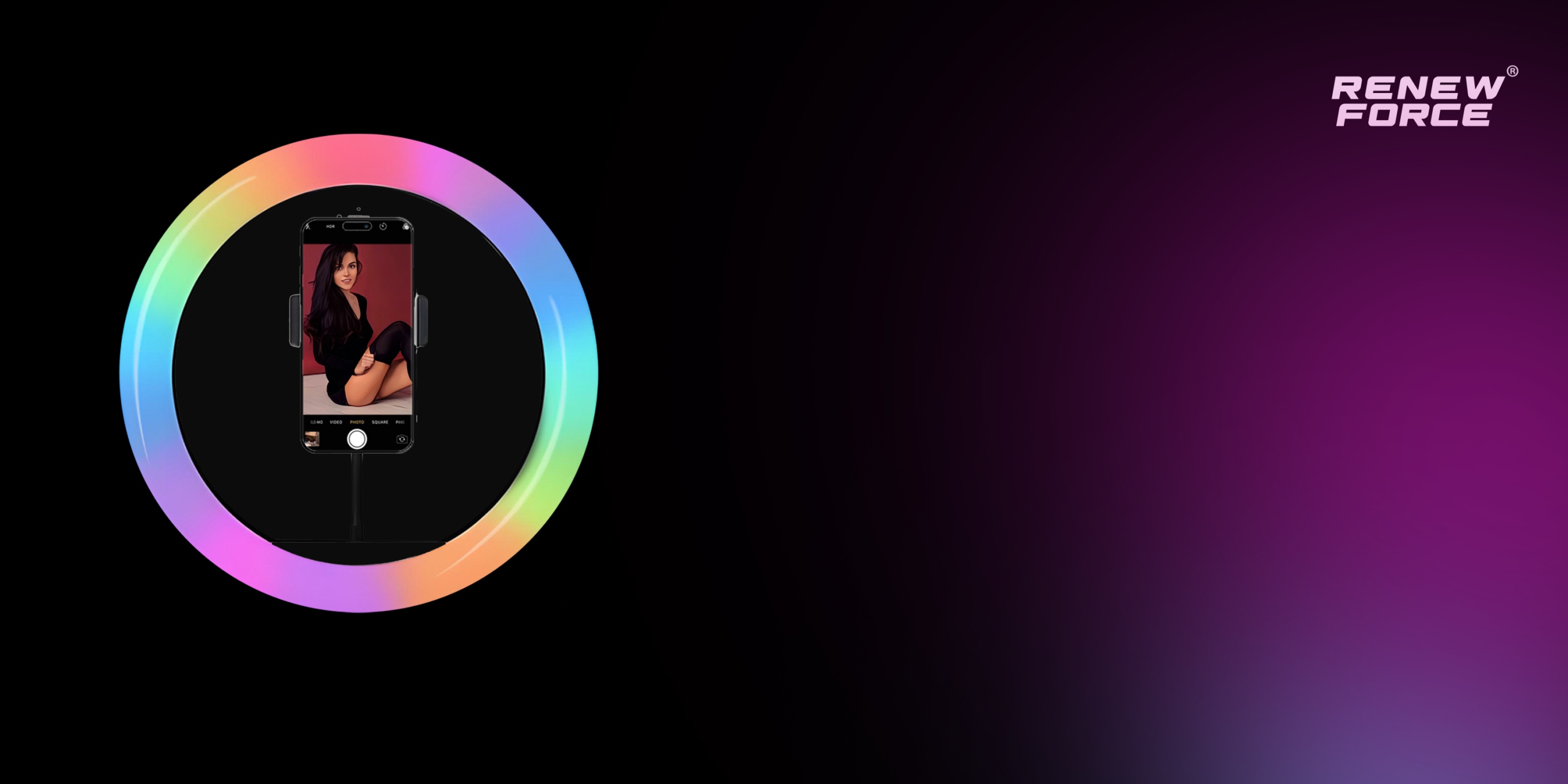 Светодиодная кольцевая лампа - это продукт со многими приложениями b>. Он работает как во время сессий , при снятии селфи, при записи фильмов и подкастов или при создании макияжа . Освещение в спектре RGB дает вам бесконечные возможности творческого выражения.