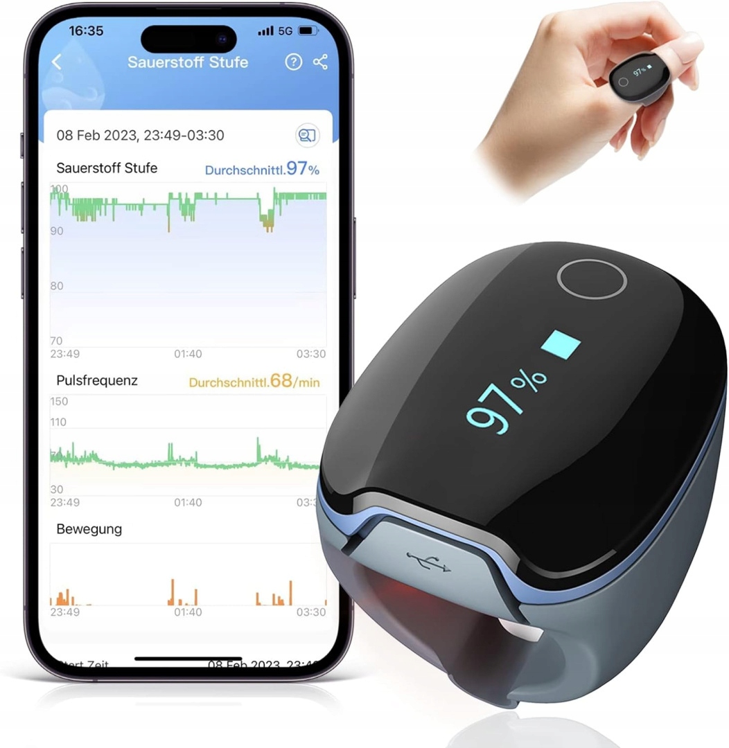 Кольцевой пульсоксиметр ViATOM O2, портативный кольцевой пульсометр Bluetooth, интеллектуальные уведомления, приложение для Android и iOS (БЕЗ ПОЛЬСКОГО), отчеты для ПК, монитор здоровья для фитнеса, авиации и повседневного использования р>