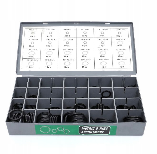 Все упаковано в пластиковый контейнер, в котором для каждого размера уплотнителя указано свое место.