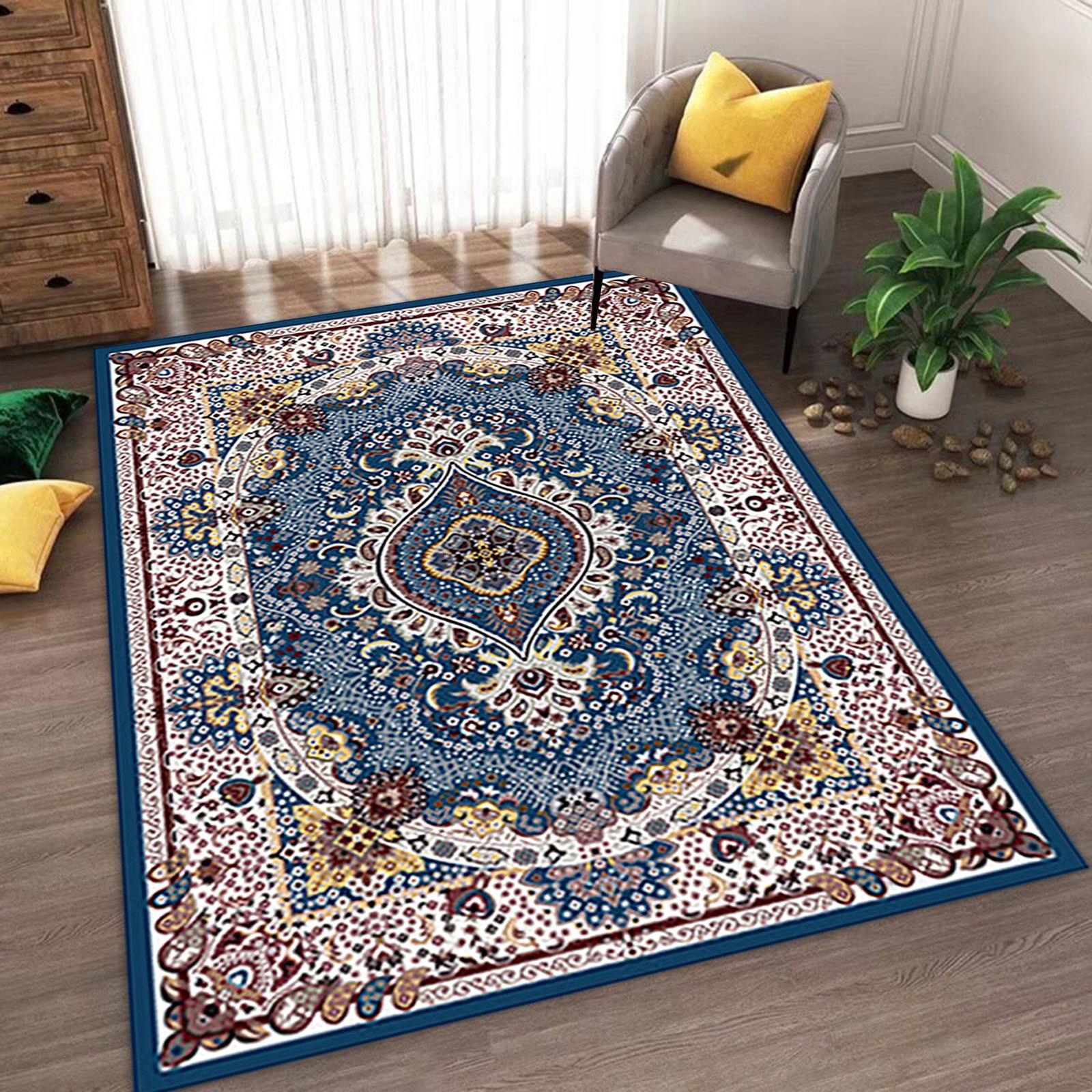 [Толстый и прочный] Персидский ковер изготовлен из высококачественного полиэфирного волокна, толстый и мягкий, удобный, обеспечивает отличную поддержку колен, обеспечивая его долговечность и комфорт.