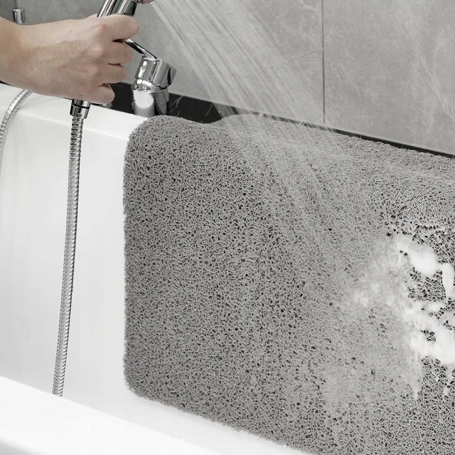 ✔️ Легко чистится и быстро сохнет, его можно легко очистить с помощью душа, чтобы смыть пену и оставить коврик с положить решеткой вверх на пол в ванной или повесить над ванной.