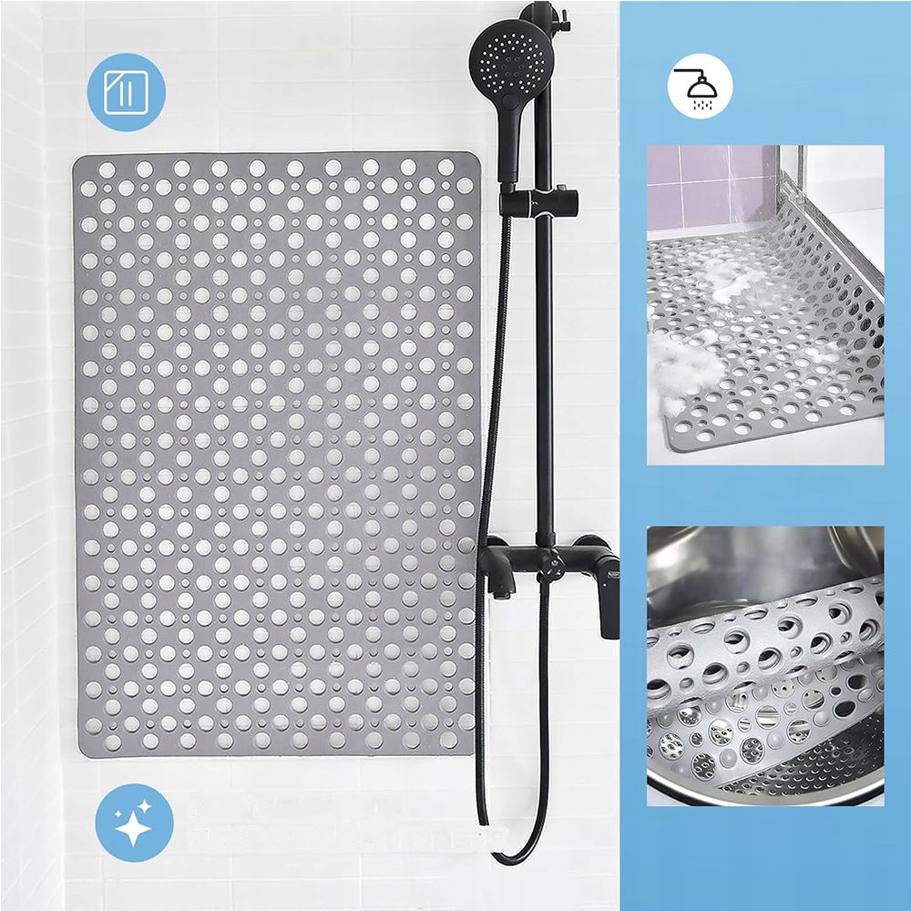 Безопасность и комфорт в вашей ванной комнате - этот универсальный коврик из ТПЭ обеспечит устойчивость и комфорт во время купания. Идеально подходит для ванны, душа, спа или тренажерного зала.