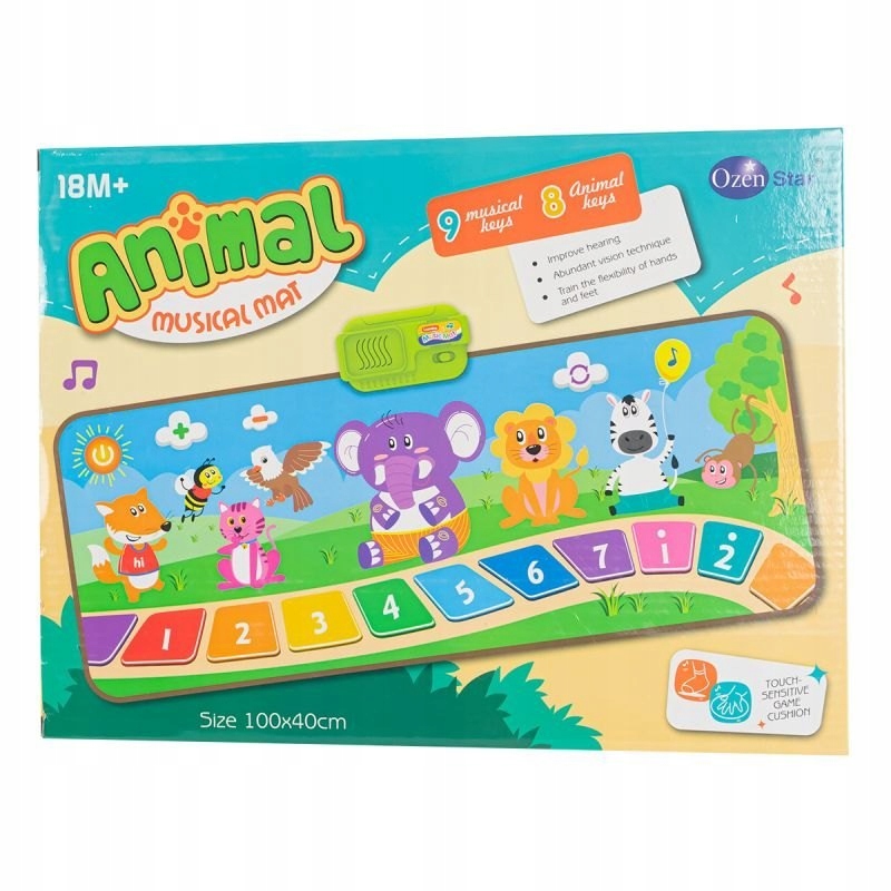 Музыкальный коврик для игры на фортепиано. Эта игрушка идеально подходит для активного времяпрепровождения с ребенком. Прыгая, нажимая разноцветные кнопки и животных, ребенок активирует различные мелодии или звуки животных.