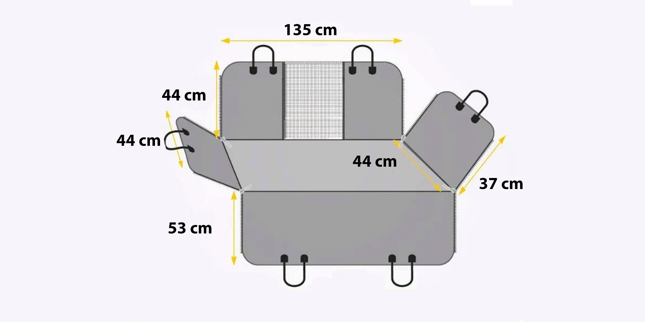 Представляем практичный коврик для автомобиля. Изделие служит манежем и чехлом на заднее сиденье. Благодаря застежкам-молниям по углам позволяет быстро адаптироваться к текущим потребностям. Коврик предотвращает загрязнение сидений и предотвращает появление волос на сиденьях. Коврик большой и имеет прочные крючки, предотвращающие скольжение. Прикрепив крючки и застегнув молнии, он создает гамак, в котором животное может передвигаться (прикрепляется к замку ремня безопасности с помощью поводка), а после расстегивания боковых молний служит гамаком, в котором животное может передвигаться. b>чехол, на котором также может сидеть няня. Коврик также можно разложить в багажнике, правильно закрепив все крючки.