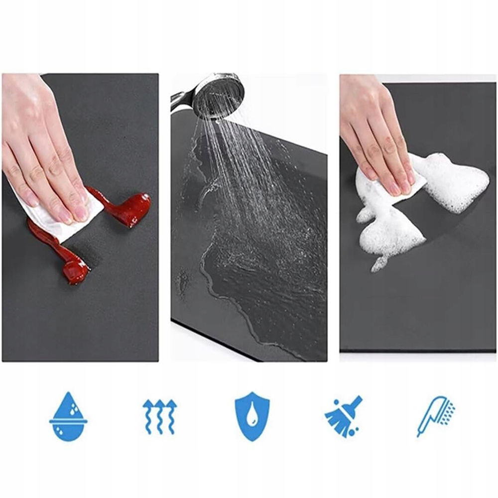 Служит не только в качестве коврика для сушки кухонной посуды, коврика для мытья посуды или коврика для кофемашины, но также в качестве защиты от брызг для крана, водопоглощающего коврика для ванной или коврика для миски для домашних животных, легко сохраняя окружающую среду сухой.