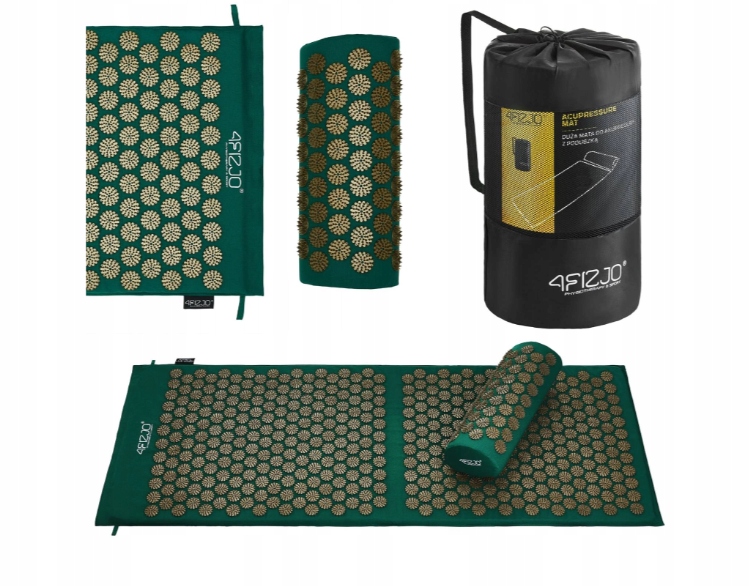 4FIZJO ACUPRESSURE MAT Акупрессурный коврик с подушкой ЗЕЛЕНЫЙ-ЗОЛОТО