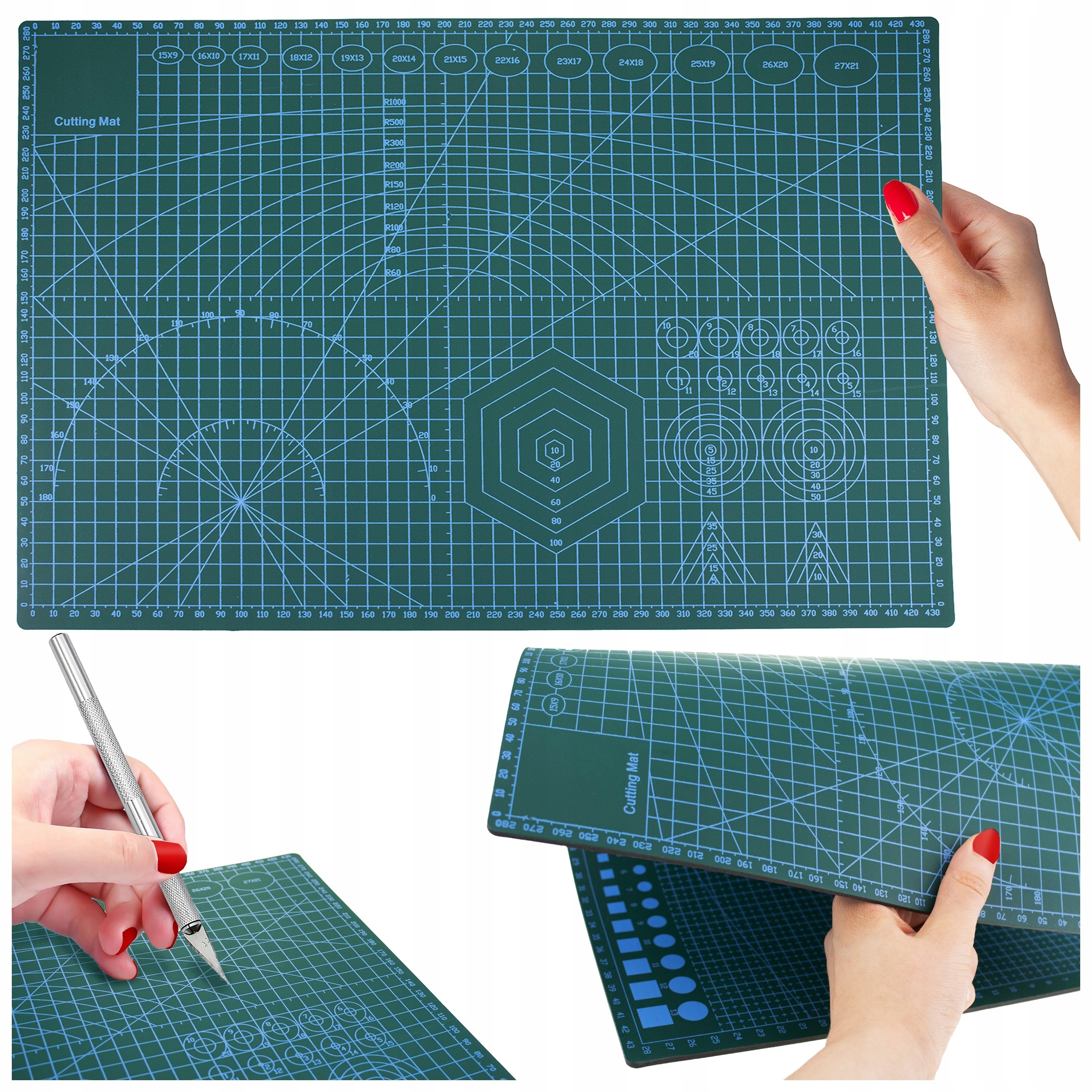 На коврике имеются сантиметровые направляющие, которые помогут вам измерить идеальный размер. Также имеются направляющие для измерения углов, необходимых для вырезания геометрических фигур.