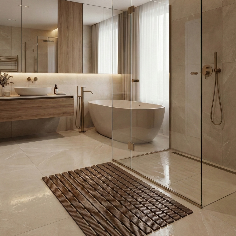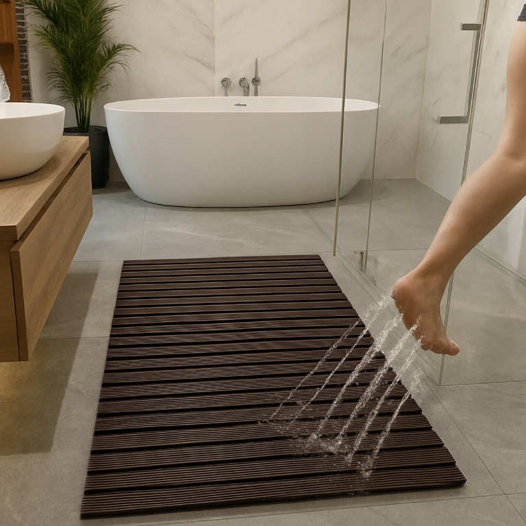 Сочетание функциональности и современного дизайна означает, что коврик не только повышает безопасность, но и является привлекательным элементом оборудования ванной комнаты.