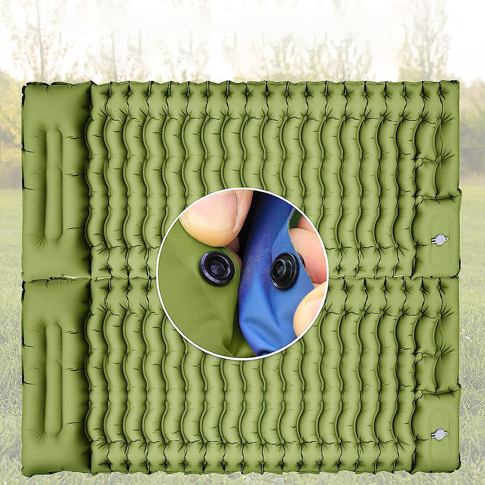 Наши спальные коврики имеют боковые кнопки, которые легко соединяются с другими, образуя двуспальную кровать, увеличивая пространство для отдыха и идеально подходящее для семьи и друзей. Его стильный дизайн с разными цветами на каждой стороне придаст нотку моды вашему отдыху на природе.