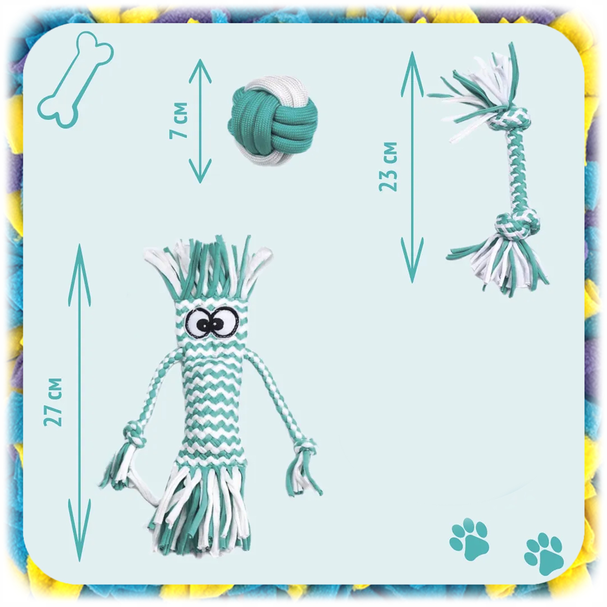 ❣️ Всестороннее развлечение – Обонятельный коврик стимулирует ум, а набор из трёх верёвочных игрушек развивает физические активность и здоровье полости рта.